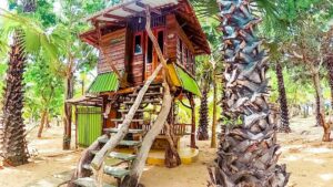 Lids crack open. The blur of fresh consciousness slowly sharpens into an image. Baby blue mosquito net in the foreground, stained glass behind it. Based on the soft orange glow diffusing through the window, I guess it’s somewhere between 5:30 and 6:00 am. A quick check of my bare wrist reveals I forgot that my trusty Casio stopped functioning a week ago. But do you really need a watch when you’re living in a treehouse?